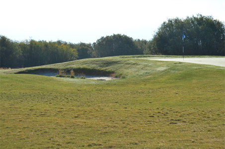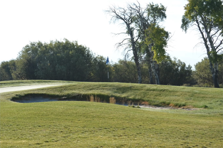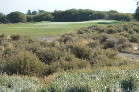 Hole 10 is located in moose country! During the early morning hours before the course opens, moose have been known to tap dance on the green requiring our talented golf maintenance crew to expertly repair the green before the first golfer. The hole has spectacular views of the Tetons and the nearby willows provide a home for our large four-legged friends. The green is one of the largest on the course and it slopes down from the center in both directions. The hole gives a chance for birdie for many of our experienced golfers.